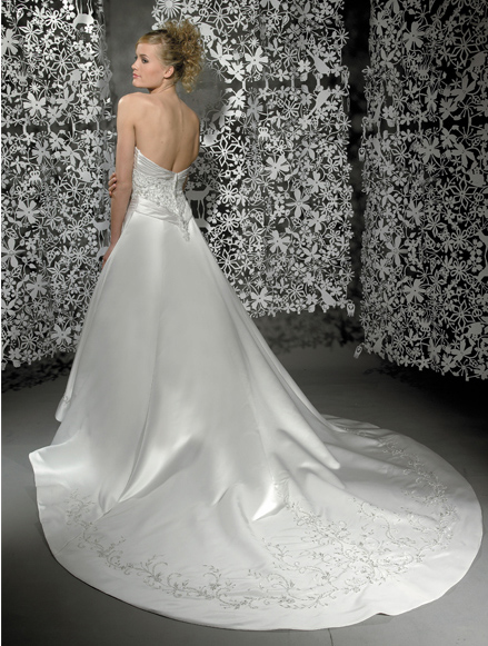 • 2012 Sparing Style Strapless Satin Embroidery Backless A-line Wedding Bridal Gown