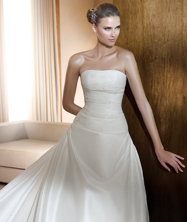 2012 Spring Style A-line Strapless Applique Court Train Wedding Bridal Gown
