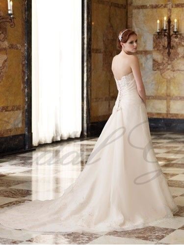 Romantically styled Yardley is in a league of its own. The softly scalloped sweetheart neckline is highlighted with crystals and an ornately embroidered bust is framed by a hand-draped organza midriff. This A-line corset back gown is perfectly balanced with asymmetric layers of soft organza in the skirt, spilling into the chapel length train, and features exquisite embroidery highlighted with crystal beading. Removable straps are included.