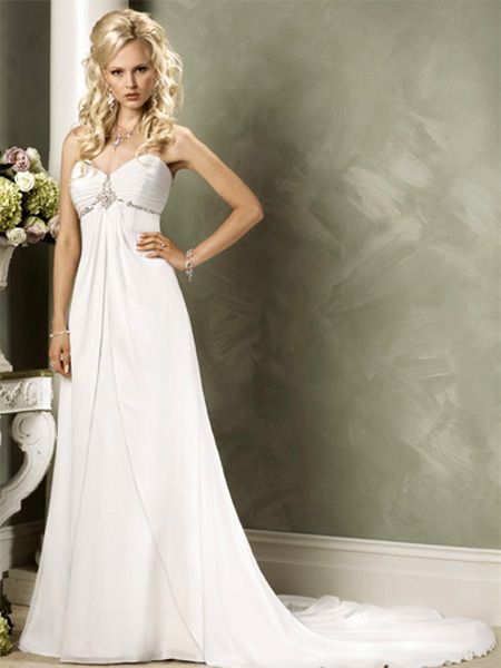 • 2012 popular Empire Waist Princess Sweetheart Beads Working soft chiffon Wedding Dress
