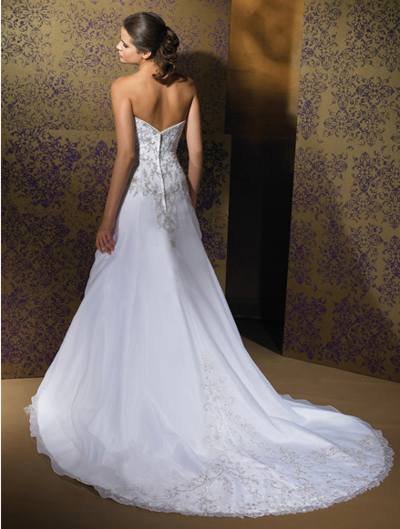 • 2012 Sweetheart Embroidery Satin Low Back Long Train A-line Wedding Bridal Gown