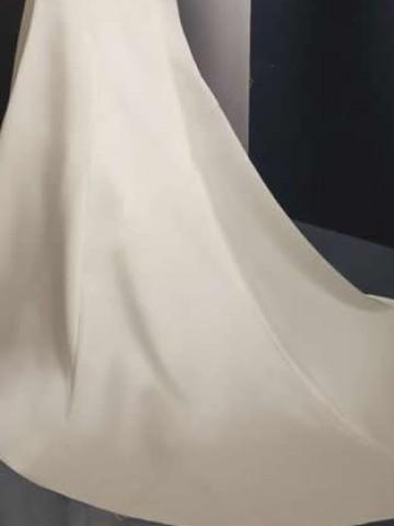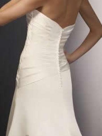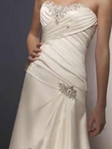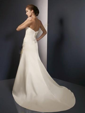 The asymmetrical bodice is decorated with a beading work at the hip part.