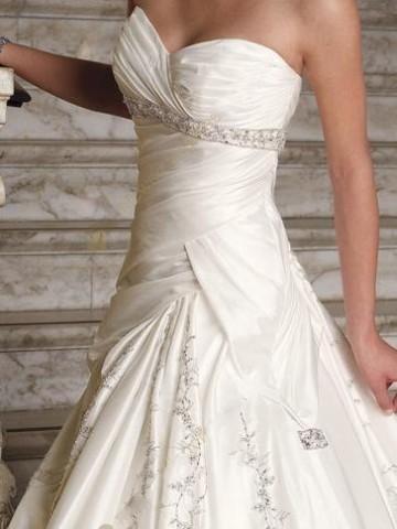 This is an exquisite strapless sweetheart wedding gown.