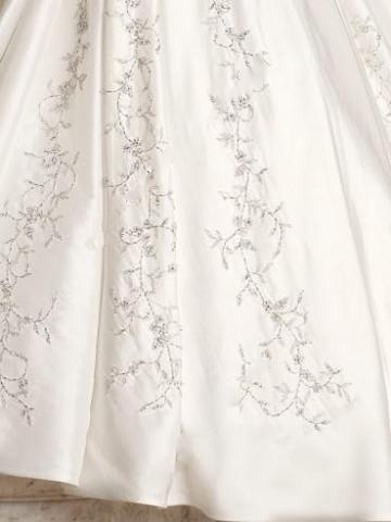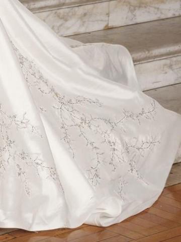 The full skirt and the chapel train is balanced with beading embroidery.