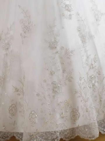 Such an elegant bridal skirt features an inner taffeta skirt with a tulle lace skirt covered.