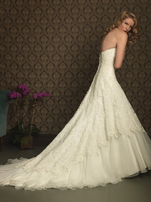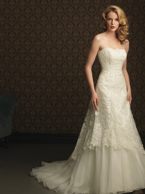 | Name | Classic Floor Length A Line Strapless Zipper Sweep/Brush Train With Lace,Appliques Wedding Dresses |