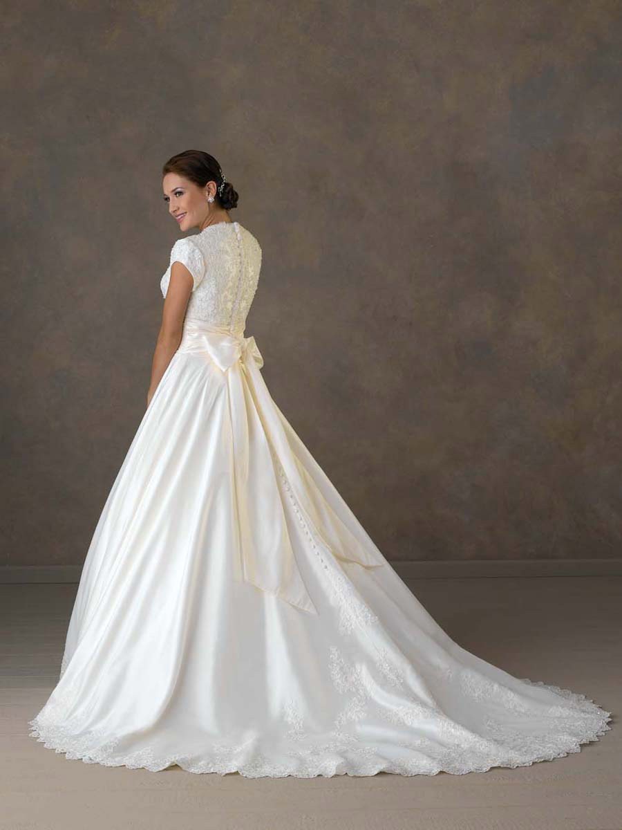 | Name | Comfortable Floor Length A-Line Short Sleeves Sweep Train With Embroidery,Sash,Button Wedding Dresses WDresses01009 |