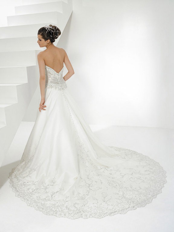 | Name | Elegant Floor Length A-Line Strapless Low Back Sweep Train With Embroidery,Beads,Button Wedding Dresses WDresses00749 |