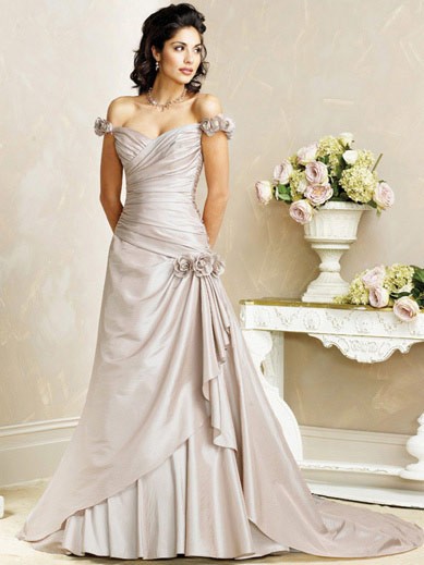 | Name | Exclusive Floor Length A-Line Off Shoulder Low Back Sweep Train With Flower,Bandage Wedding Dresses WDresses00774 |