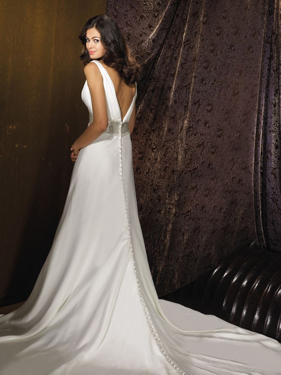 | Name | Exclusive Floor Length A-Line V-Neck Zipper Sweep/Brush Train With Ribbon Wedding Dresses |