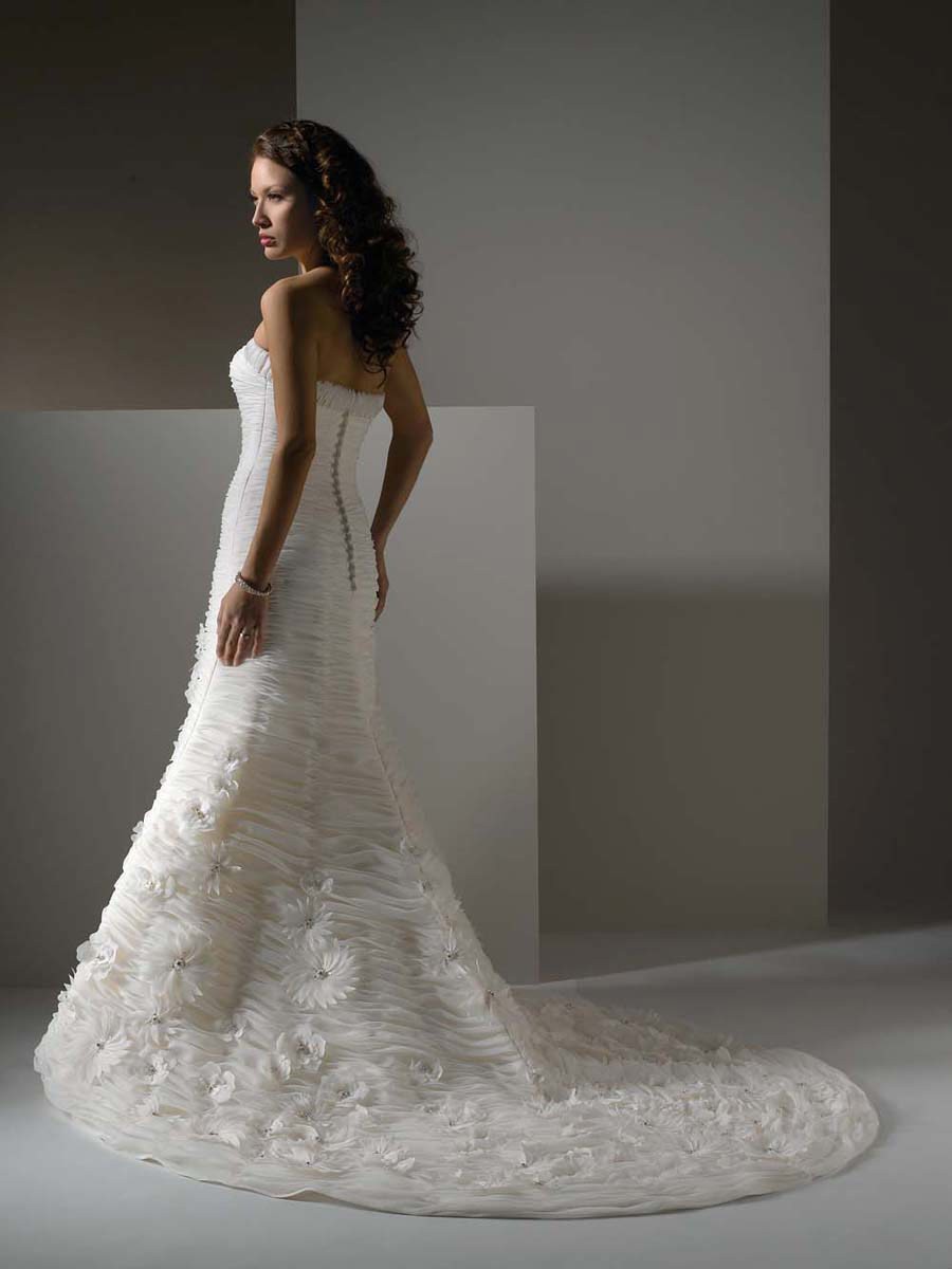 | Name | Eye-Catching Floor Length A-Line Strapless Low Back Sweep Train With Ruche,Button Wedding Dresses WDresses00973 |