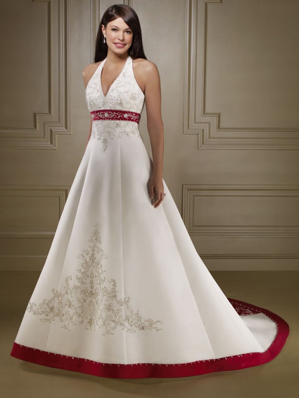 | Name | Fashionable Floor Length A-Line Halter Lace Up Sweep/Brush Train With Embroidery,Beads Wedding Dresses |