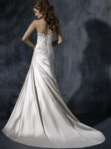 Name Feminine Floor Length A-Line Strapless Low Back Sweep Train With Embroidery,Bandage Wedding Dresses WDresses00896