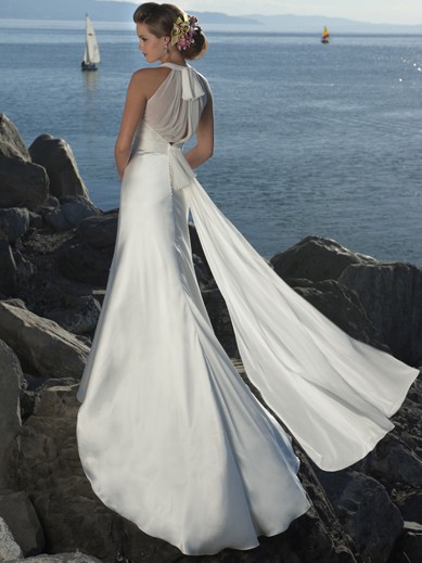 | Name | Gorgeous Floor Length A Line Halter Zipper Sweep/Brush Train With Brooch,Ruffles Wedding Dresses |