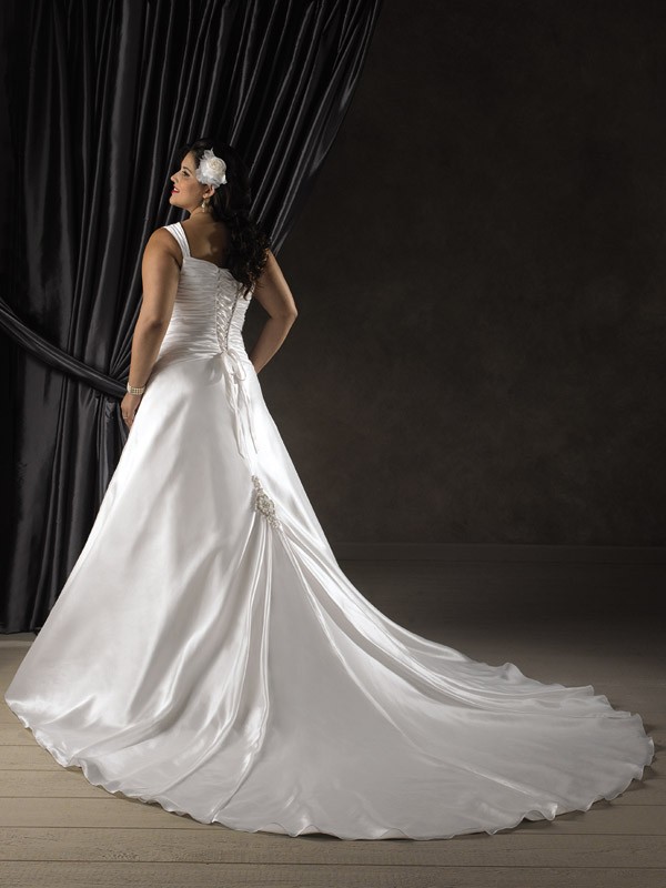 Name Gorgeous Floor Length A Line Spaghetti Straps Lace Up Sweep/Brush Train With Ruffles Wedding Dresses