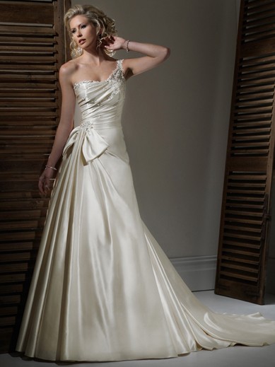 | Name | Graceful Floor Length A-Line One Shoulder Lace Up Sweep/Brush Train With Beads Wedding Dresses |