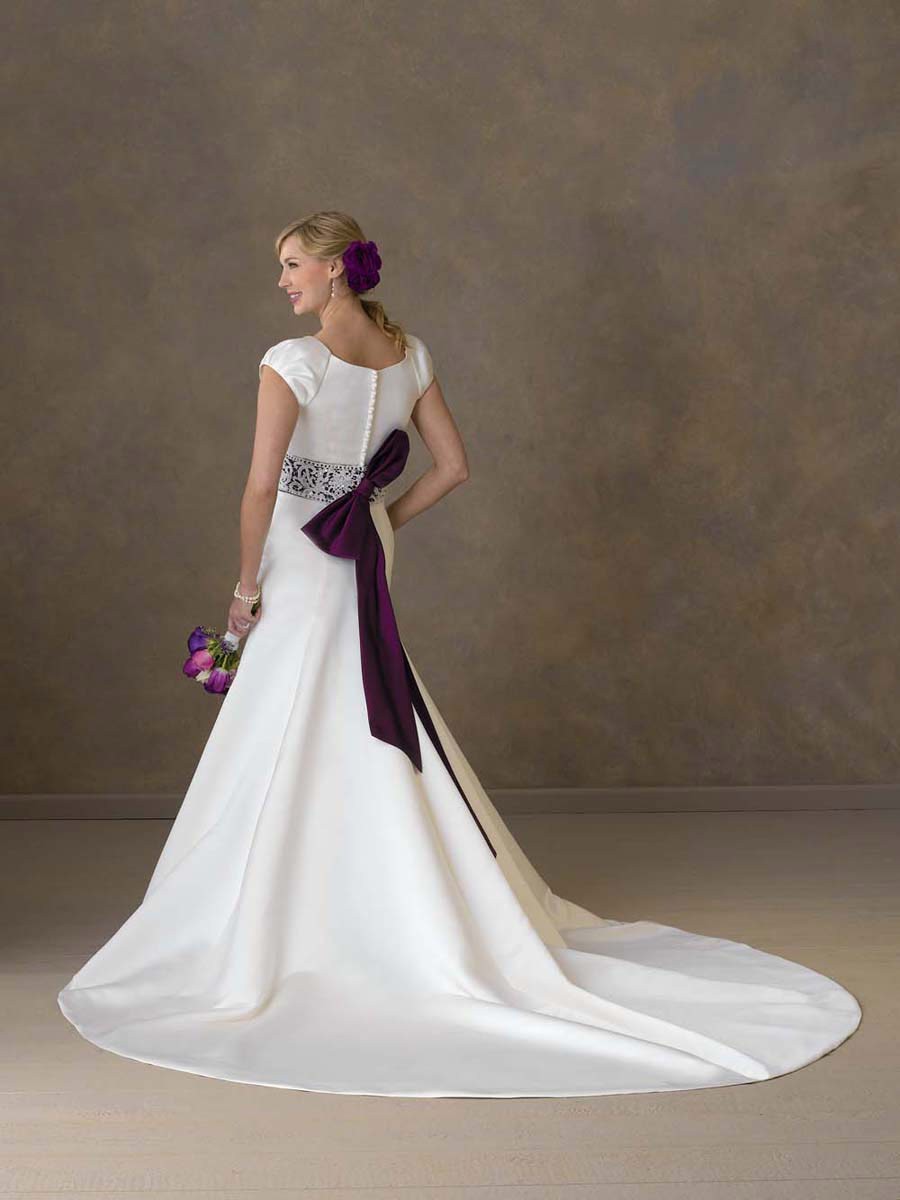 | Name | Latest Floor Length A-Line Short Sleeves Sweep Train With Embroidery,Purple Sash,Button Wedding Dresses WDresses01021 |