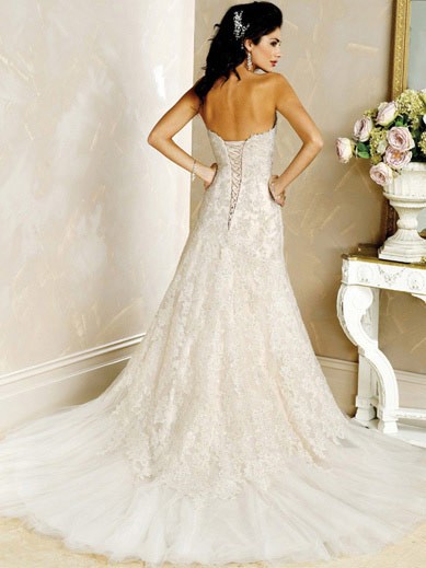 | Name | Never Out Of Fashion Floor Length A-Line Strapless Low Back Sweep Train With Embroidery,Bandage Wedding Dresses WDresses00947 |