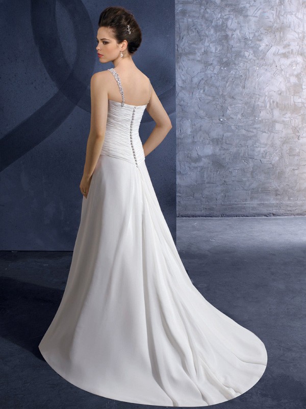| Name | New Arrival Floor Length A Line Spaghetti Straps Zipper Sweep/Brush Train With Brooch,Ruffles Wedding Dresses |