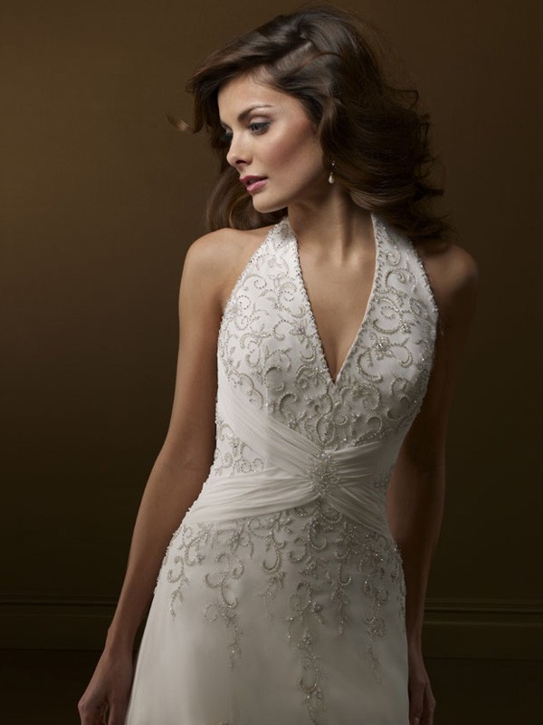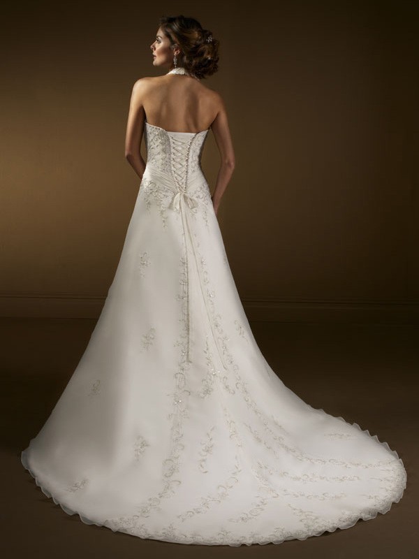 • New Style Floor Length A-Line Halter Lace Up Sweep/Brush Train With Embroidery Wedding Dresses