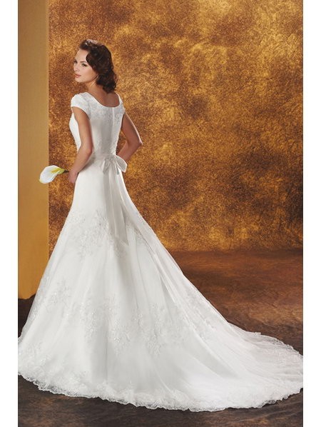 | Name | New Style Floor Length A-Line Short Sleeves Sweep Train With Embroidery,Sash Wedding Dresses WDresses01034 |