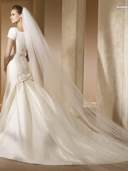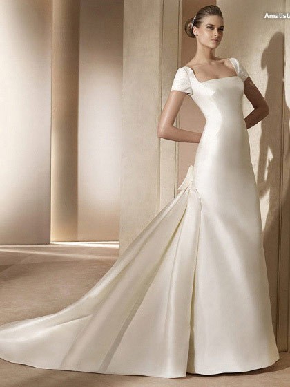 | Name | Pure Floor Length A-Line Short Sleeves Low Back Sweep Train With Button,Bowknot Wedding Dresses WDresses00812 |