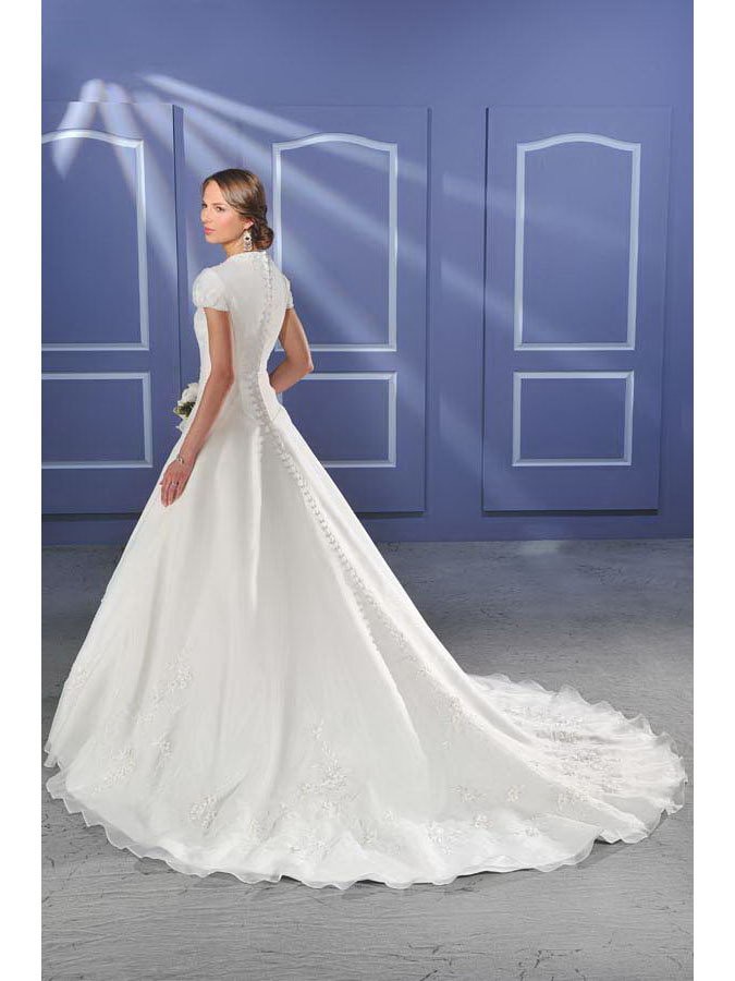 | Name | Pure Floor Length A-Line Short Sleeves Sweep Train With Embroidery,Button Wedding Dresses WDresses01008 |