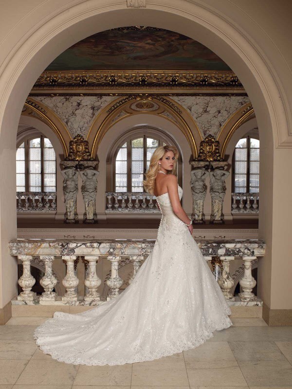 | Name | Pure Floor Length A-Line Strapless Low Back Sweep Train With Embroidery,Button Wedding Dresses WDresses00715 |