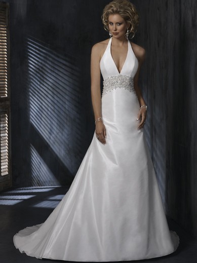 | Name | Retail Floor Length A-Line Halter Zipper Sweep/Brush Train With Belt Wedding Dresses |