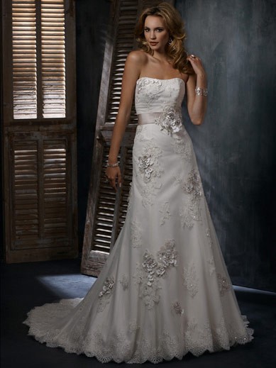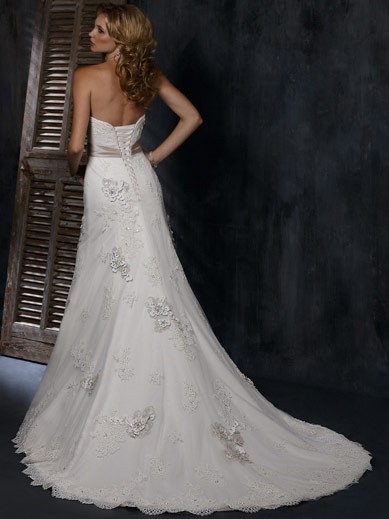 | Name | Romantic Floor Length A-Line Strapless Low Back Sweep Train With Applique,Bandage Wedding Dresses WDresses00904 |