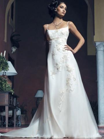 A-line wedding dress features spaghetti design.Beading and embroidery.