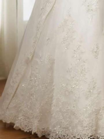 The chapel train is also scattered with beaded lace.