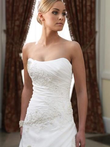 The bodice of the dress is adorned with beaded applique.