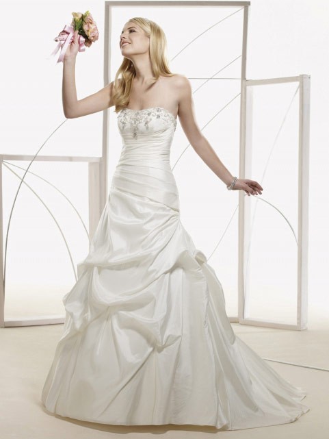 | Name | Vogue Floor Length A-Line Strapless Low Back Sweep Train With Embroidery,Bandage Wedding Dresses WDresses00837 |