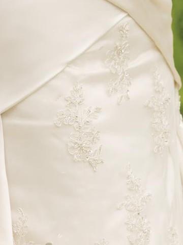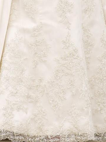 The chapel train is scattered with applique beading.