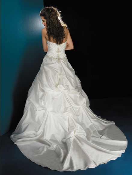 • 2012 A-line Wrinkle Taffeta Strapless Applique Decorate Long Train Ball Gown Wedding Bridal Gown