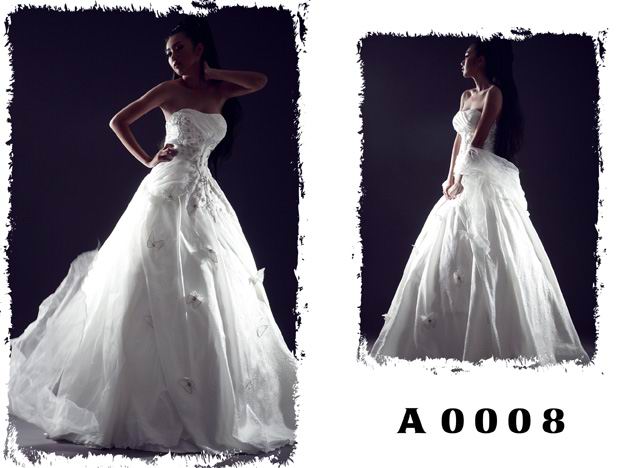 2012 Casual Strapless Applique and Flowers A-line Princess Ball Gown Wedding Bridal Gown