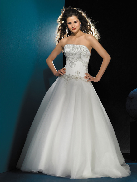 2012 Discount Designer Strapless Embroidery Court Train Ball Gown Wedding Bridal Gown