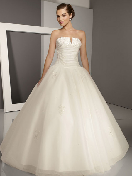 2012 princess Strapless Long Length Beads Working satin faced organza Ball gown Wedding Dress