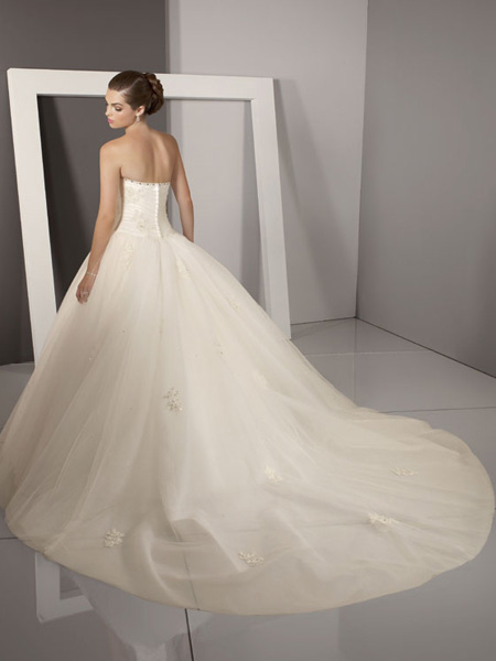 • 2012 princess Strapless Long Length Beads Working satin faced organza Ball gown Wedding Dress