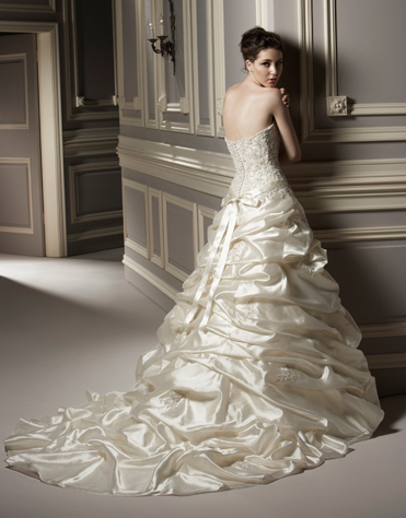 • 2012 Taffeta Strapless A-line Applique Designer Court Train Ball Gown Wedding Bridal Gown