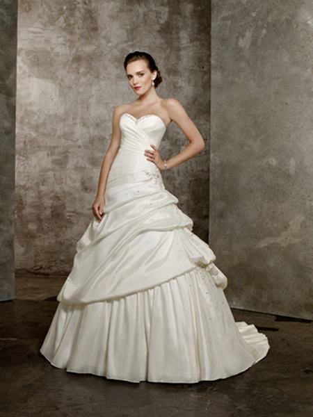 2012 Wholesale Cream sweetheart Satin Sweep Length Wedding dress