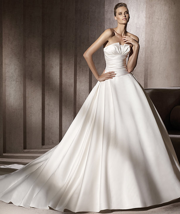 2012 Wrinkle Satin Court Train Empire Waist Ball Gown Wedding Bridal Gown