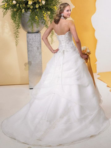 This wedding dress features strapless and sweetheart design.