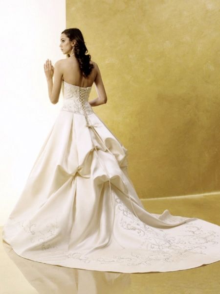 • Light Champagne Strapless Scoop Ball Gown Embroidery Satin Full Length Wedding dress at discount price