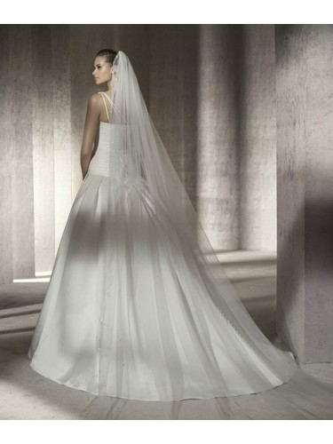 Specials: Satin Straight Neckline One-Shoulder Strap with Gathered Bodice and Side Draped Skirt with Chapel Train