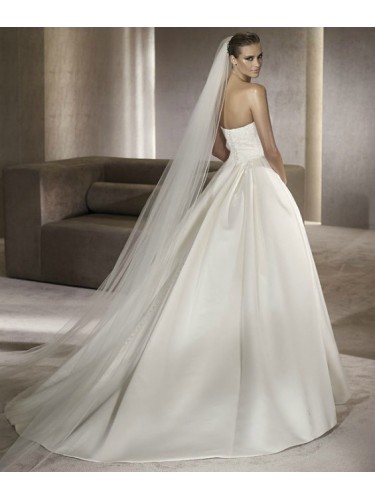 Specials: Satin Strapless Straight Neckline with Beaded Bodice and Side Draped Skirt with Chapel Train