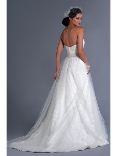Shipping Weight: 3.5KgSweetheart, soft ball gown With tulle overlay adds depth to the luxurious lace skirt. A satin waistband is embellished With embroidery and beading and an embroidered tulle abstract flower.