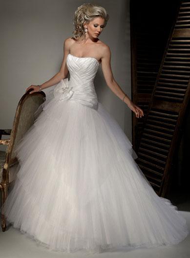 The ball gown wedding dress silhouette can make your princess dreams come true. With a full skirt, you'll certainly be the center of attention as you float down the aisle. The layers and layers of fabric are dramatic and simply dreamy. If you choose the ball gowns, you probably want to hit the ladies room before putting it on. :)