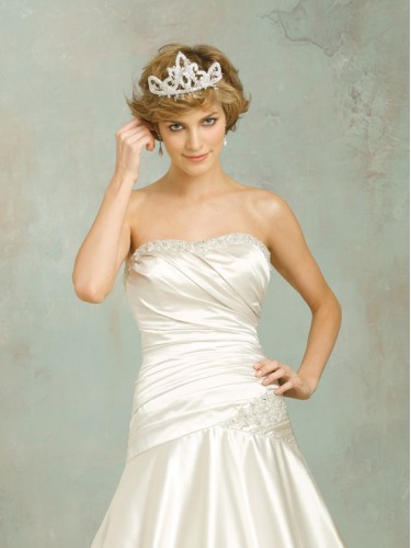 Shipping Weight: 3.5KgStrapless, Ball Gown featuring Swarovski crystals along the sweetheart neckline. The dropped waist bodice is ruched asymmetrically and is accented with crystals at the hipline. A full, gathered skirt is completed with a bubble hem and train.